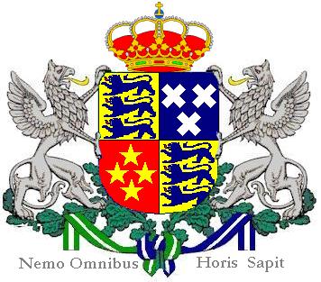 | What is the nation's national animal? Researching... What are the nation's national colours? Researching... Who is the nation's patron saint, if any? St. Thomas, for whom the capital of Ęthelnia is named. What is the nation's national anthem? The Golden Bow What is the nation's coat of arms? The main escutcheon is quartered, with in the first (and fourth quarter) three Lions azure on an escutcheon of gold, symbolizing the three main rivers of Aethelnia that provide wealth (golden fields of grains) for the kingdom and it's people. These arms are also in use with the royal family. The second quarter is a escutcheon of azure with three crosses of Saint Thomas. This quarter represents the patron saint of Aethelnia, Saint Thomas, and Holy Trinity (of Patris, Spiritus et Sancti). These arms are also in use with the capitol city of Saint Thomas. The third quarter depicts four stars of gold on a red escutcheon, representing the Northern (Phenixian) Lands and their historic capitol of Saint Nazaire. The main escutcheon is guarded by two Griffons of argent. These are historically frequently used heraldic symbols in Aethelnian heraldry, and originate from an ancient Aethelnian legend about the birth of Aethelnia. The griffon on the left is called Melchior, and the one on right is called Isidore. The crest rests on two branches of Aethelnian oak and is crowned with the royal crown of Winsom. The motto "Nemo Omnibus Horis Sapit", means: No one can be wise at all times. It originates from the same legend as the two Silver Griffons. Finally, the knotted ribbons below the shield symbolize unity of the Aethelnian peoples. Lesser Arms of Aethelnia The lesser arms are used mainly as letter head for offical government and embassies/consulate stationary. It exists of the main escutcheon without 'extras' and crowned with the royal crown of Winsom. |